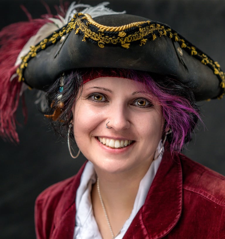 Fairen grew up in Vermont, and found her way to Maine while attending Maine College of Art & Design. She lives in Portland with her partner, and when she is off-duty from being a pirate she can be found foraging in the woods or playing Stardew Valley. She joined the Shank Painters in 2020 and has been causing mayhem ever since!